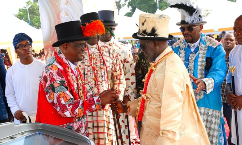 Read More »FCT Minister, Nyesom Wike, receiving a staff from the Amanyanabo of Okochiri Kingdom in Okrika LGA of Rivers State, King…