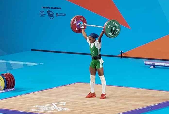 Weightlifter Adijat Olarinoye beat others in the women’s 55kg category to win the first gold for Nigeria at the 2022…