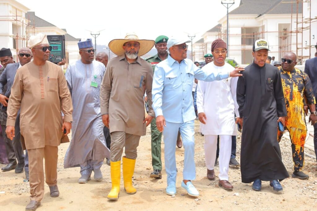 FCT Minister, Nyesom Wike, inspecting the ongoing Appeal Court Complex, Appeal Court, Federal High Court and FCT High Court Judges Quarters, Heads of Courts Residences and remodeling of Abuja City Gate today.
